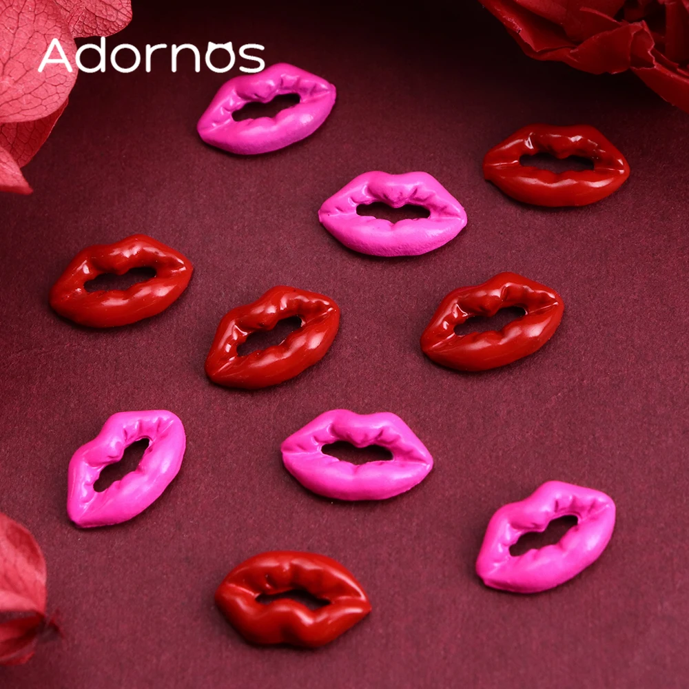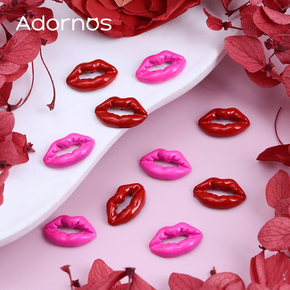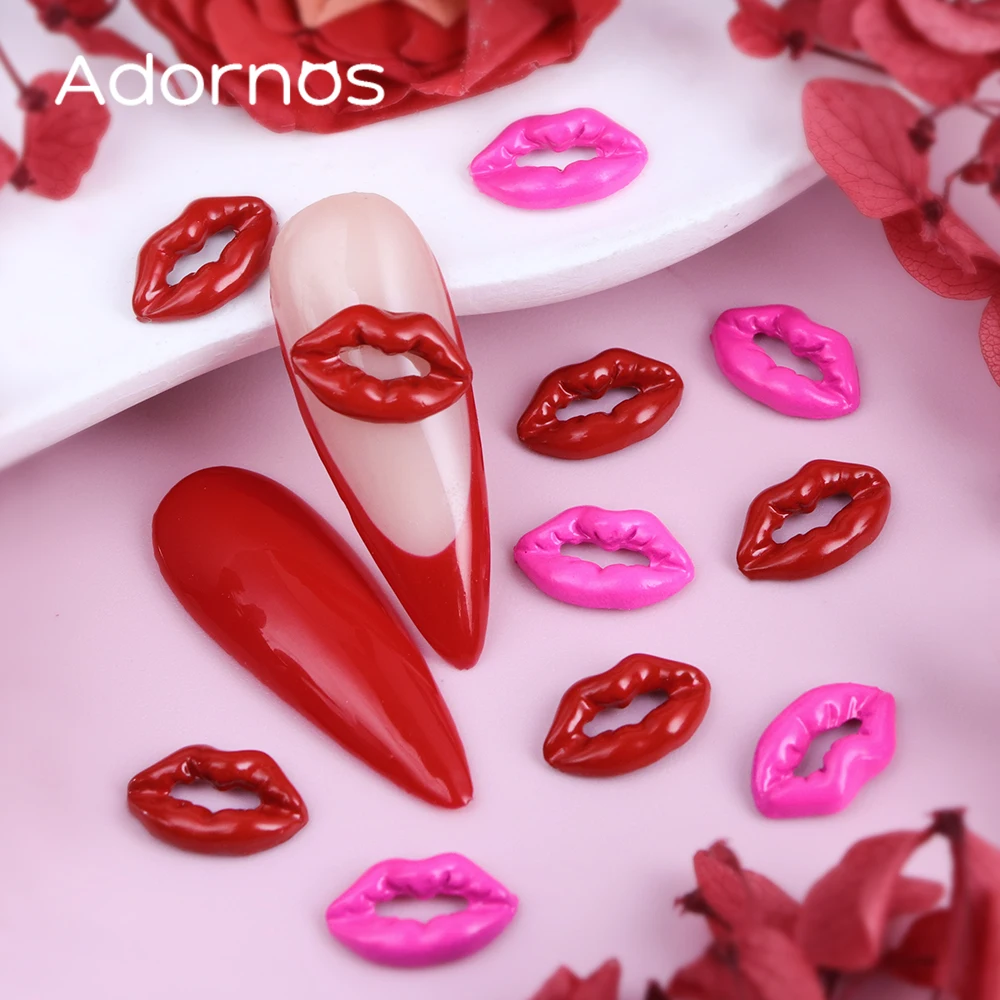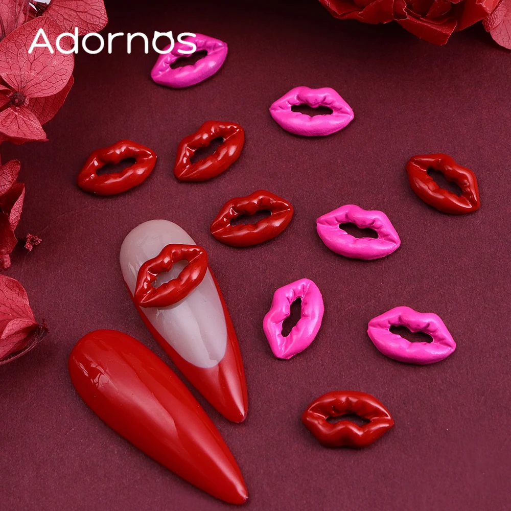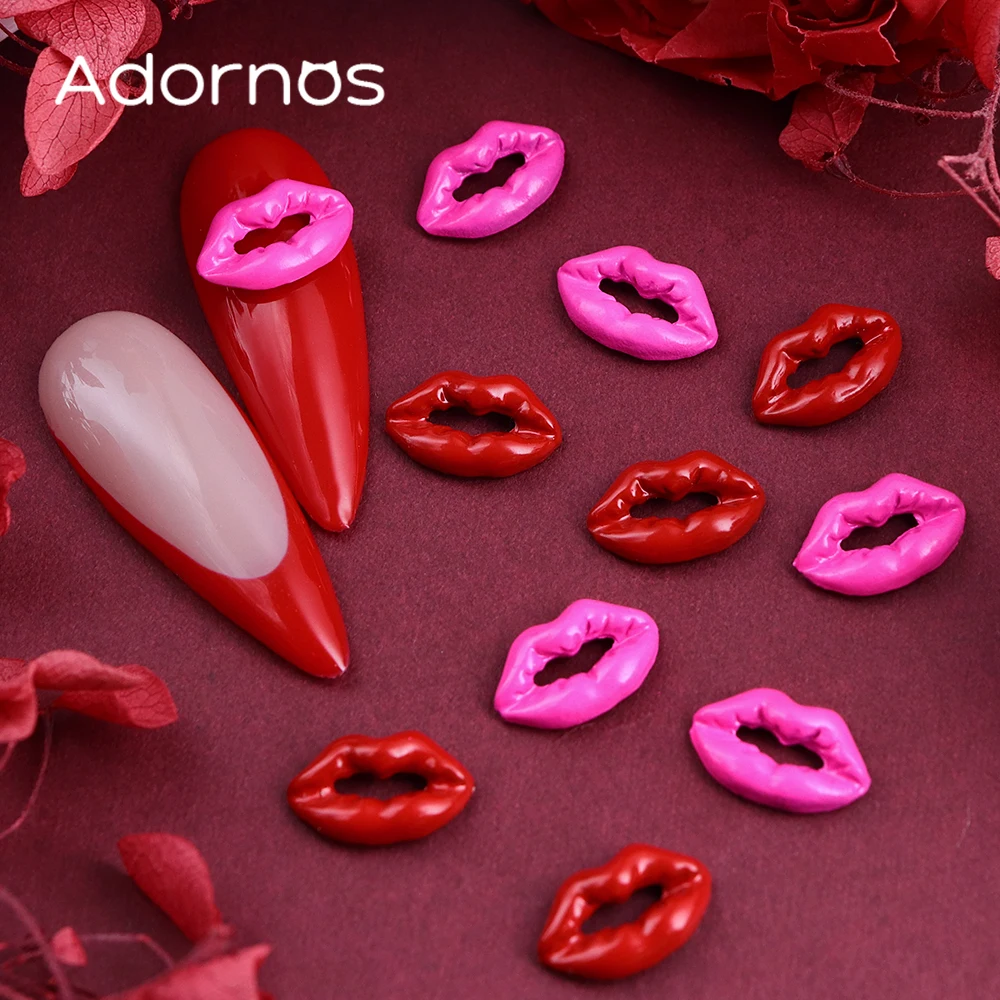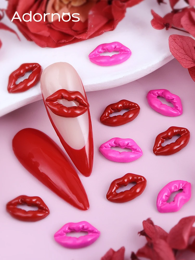 10pcs 3D Red Lip Nails Art Accessories Pink Lip Shape Resin Rhinestones Manicure Charms Valentine’s Day DIY Nails Decoration